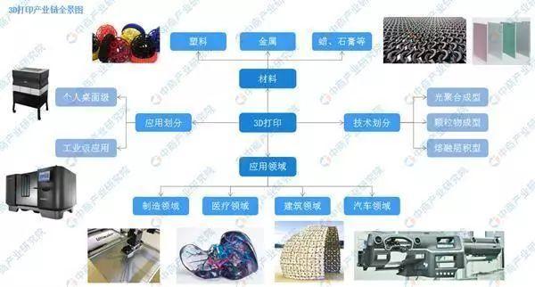 3D打印行業(yè)產(chǎn)業(yè)鏈從上中下游來看,上游為塑料、金屬、蠟、石膏、砂等其他各種材料。中游為3D打印設(shè)備及技術(shù),下游則為制造、醫(yī)療、建筑、軍事等應(yīng)用領(lǐng)域。