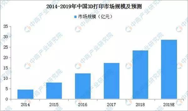 全球3D打印正火熱,由于中國引進3D打印技術(shù)較晚,與國外有一定差距,但近年來也得到快速發(fā)展。目前,中國的3D打印應(yīng)用主要集中在家電及電子消費品、模具檢測、醫(yī)療及牙科正畸、汽車及其他交通工具、航空航天等領(lǐng)域。據(jù)《2019年3D打印行業(yè)市場前景及投資研究報告》顯示,2018年中國3D打印市場規(guī)模達到23.6億元,同比增長近42%。伴隨著中國3D打印技術(shù)的相應(yīng)成熟,在航天航空,汽車等行業(yè)需求將持續(xù)增加,預(yù)計2020年中國3D打印市場規(guī)模將近30億元。